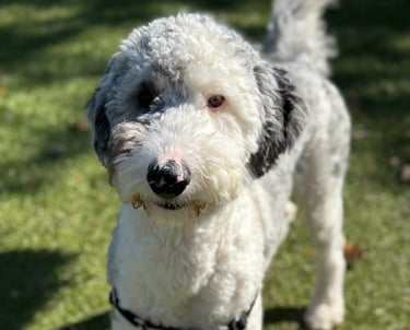 Quinne is a spirited 3-year-old Sheepadoodle whose big heart and bigger personality helped inspire one of the beloved characters in Murphy and the Magic Wild. Born in the rolling hills of West Virginia, she was adopted at just 8 weeks old and quickly became the center of adventure in her new family.