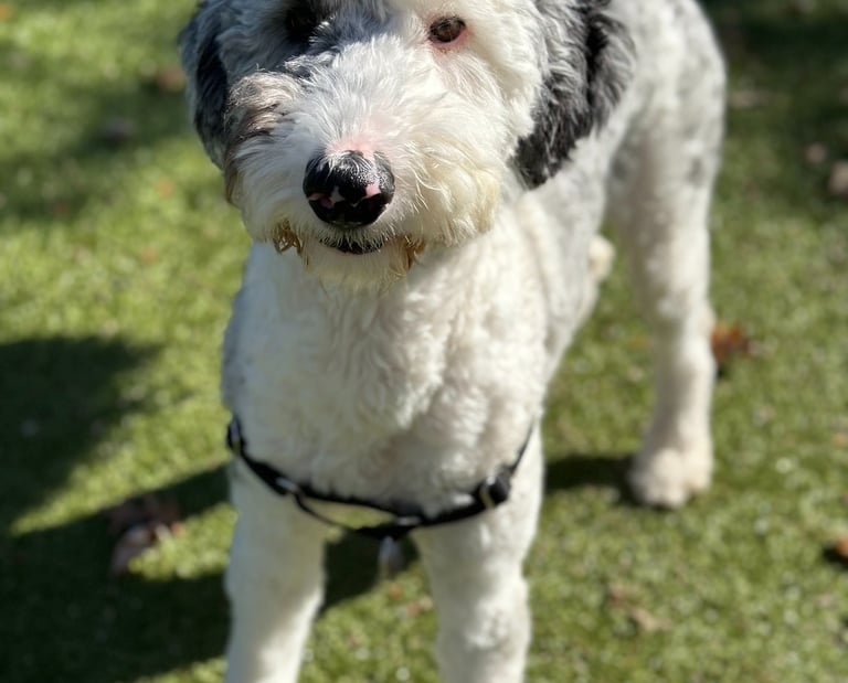 Quinne is a spirited 3-year-old Sheepadoodle whose big heart and bigger personality helped inspire one of the beloved characters in Murphy and the Magic Wild. Born in the rolling hills of West Virginia, she was adopted at just 8 weeks old and quickly became the center of adventure in her new family.